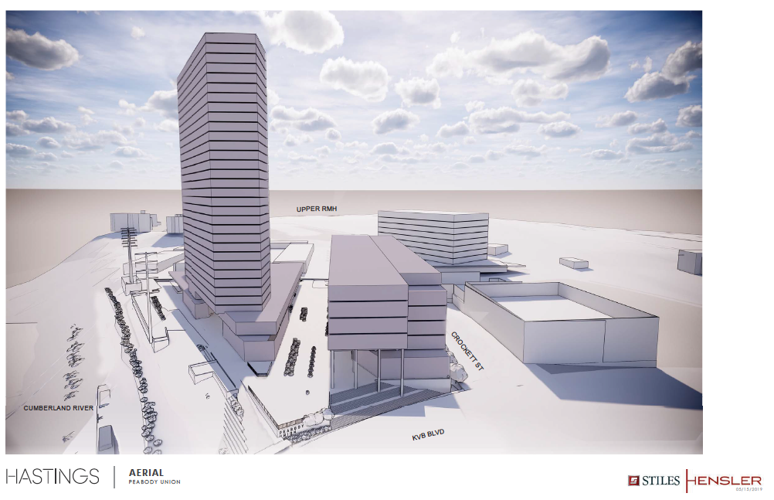 Work can begin on Peabody Union once Eakin Partners finishes its mixed-use Peabody Place project rising on a nearby site and MDHA completes a parking garage. (The surface parking to be lost on the Peabody Union site will be compensated for at Peabody Place).